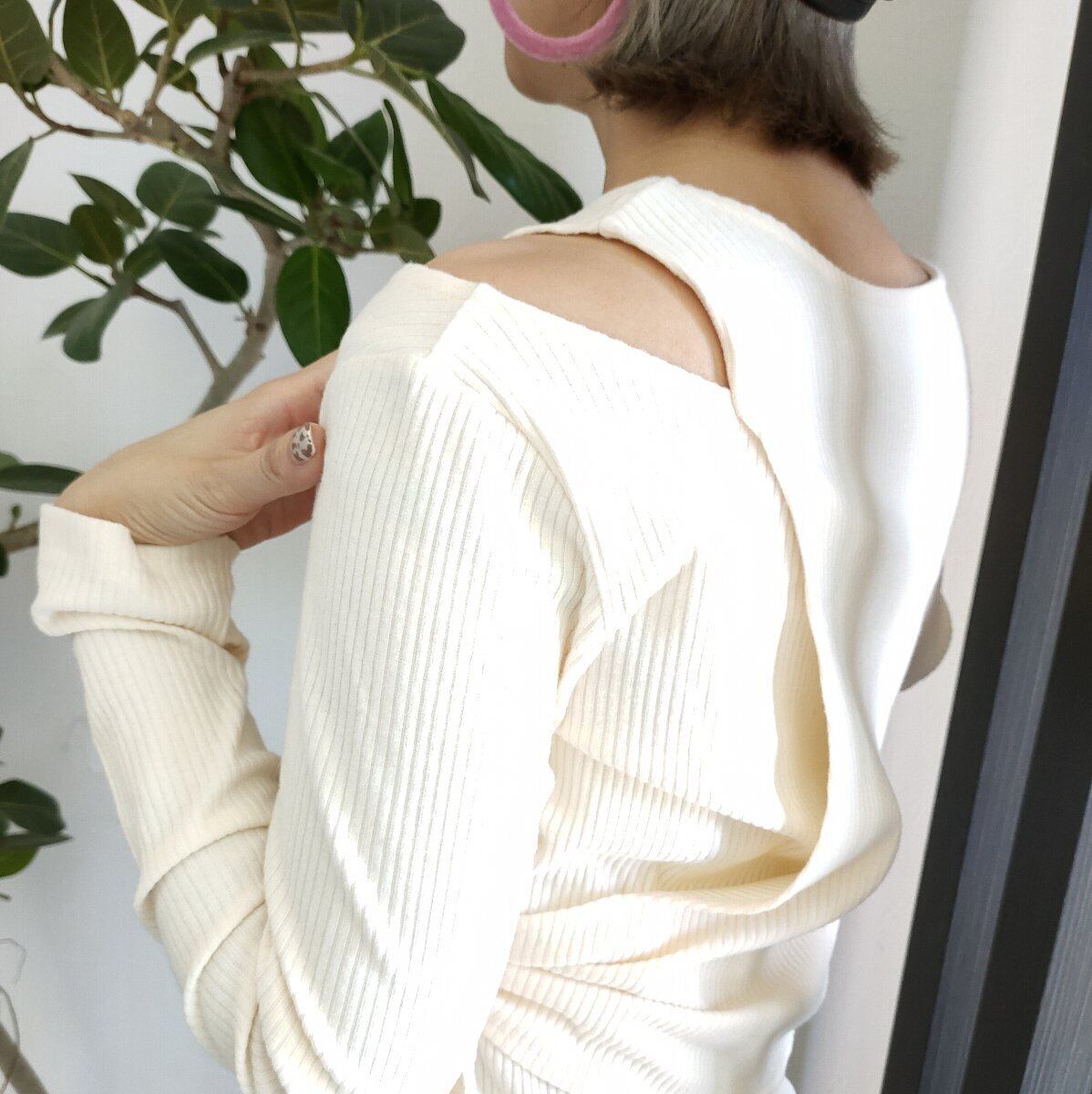 少し厚手のリブニットカットソーで